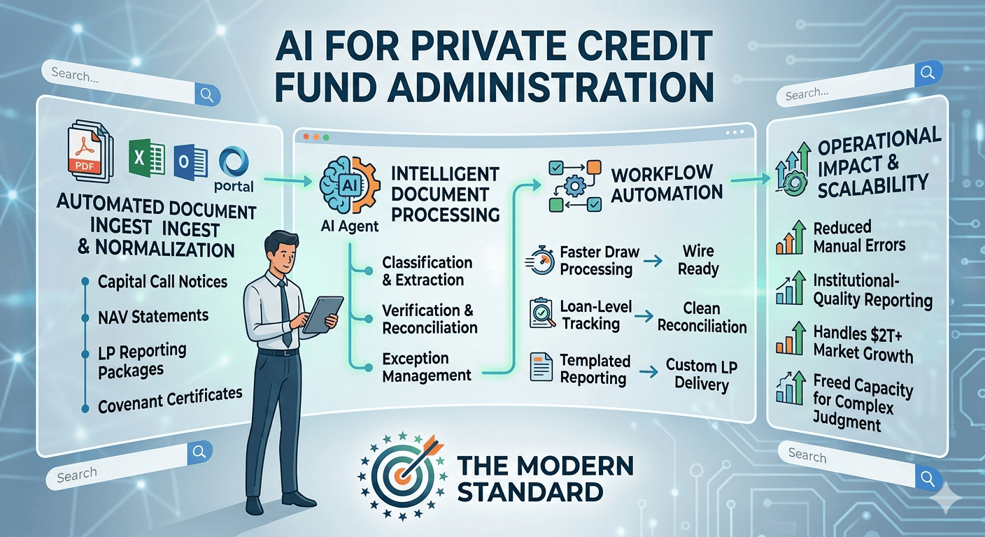 The traditional answer has been more headcount and more hours. Larger operations teams, careful manual reconciliation, and a lot of late nights before quarter-end. That worked when private credit was a niche corner of the alternatives market. It doesn't scale to where the asset class is today.